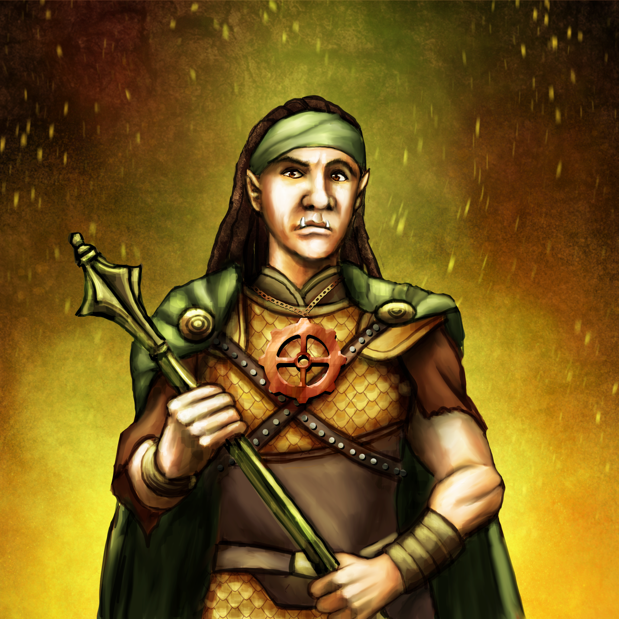 - Kem Hearthfire - Chaotic Good Half-Orc Former Gladiator Priestess of Gond.